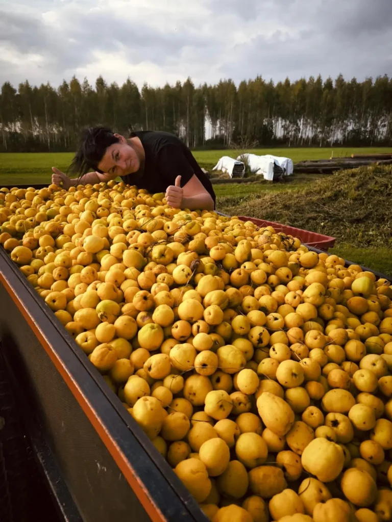 Šie astoņi gadi ir bijuši pilni ar eksperimentiem, mācībām un neatlaidīgu darbu. Sākumā cidonijas lasījām tikai paši ģimenes lokā, bet, kad raža kļuva lielāka, nolēmām rīkot talkas. Tagad šis notikums kļuvis par mūsu ikgadējo tradīciju – draugi un paziņas ar prieku ierodas palīdzēt, un pēc čakla darba mūs visus gaida kopīga atpūta un svētku noskaņa.